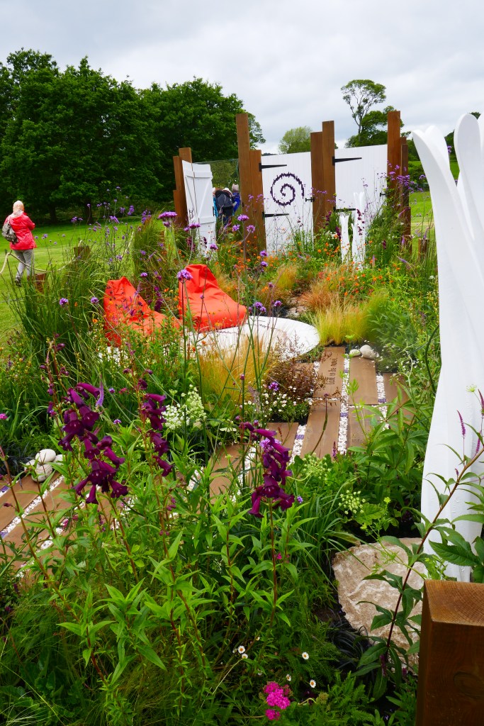 The Thrive garden in the middle picture above, was lovely, if perhaps a tad lively for a garden aimed at providing a peaceful sanctuary. The garden judged best in this category was the one on the left, called ‘Space Within’. It may not be as attractive in garden terms, but it probably fulfilled the brief more completely. The third picture was a garden I particularly liked. Designed by Samantha Harvey, head gardener at Broomfield Hall, and called ‘Find Yourself Lost In The Moment’ it was inspired by volunteer gardeners who feel they benefit mentally and physically from the opportunity to work in a large garden. Ironically it was a really small area but it gave some good ideas for what you could do with a garden which, for once, seemed no wider than mine mine (about 3m).