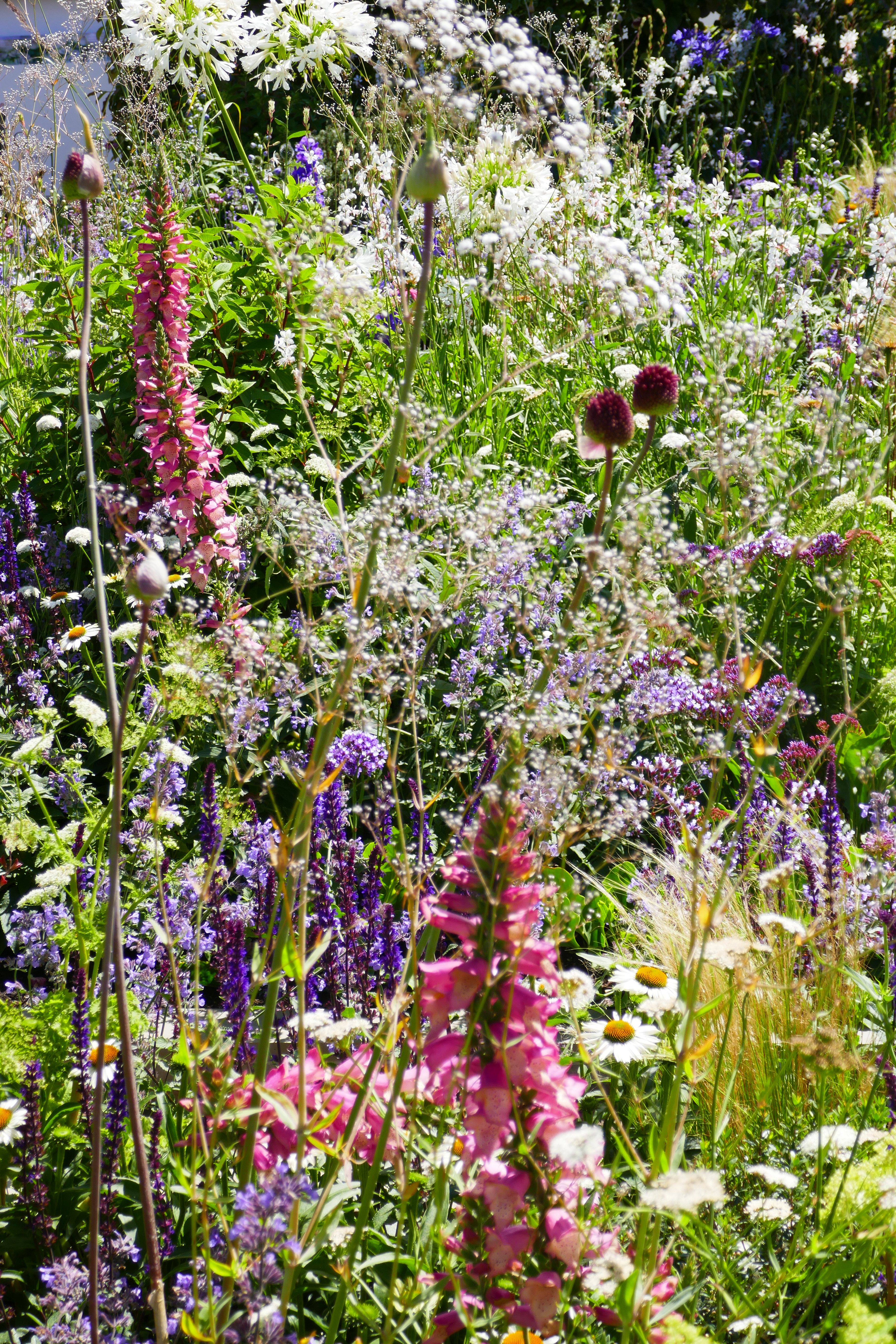 In my experience insects aren’t overly bothered about how you arrange your plants and this ‘wild’ look wouldn’t work in my long, narrow terraced garden. Plant communities that support a wide range of wildlife don’t have to look like this either, they can look like a normal herbaceous border or they can look like the Beth Chatto Drought Resistant garden, above, which was also teeming with insects. To encourage and help the many different forms of life that can exist in a garden, it helps to look at lists of plants that are good for pollinators and use as many as possible, and it helps to plant closely and allow things to be a bit messy. It doesn’t have to be specifically ‘wild’. This isn’t just my view, it is backed up by a considerable amount of research carried out at Sussex University and at RHS Wisley, amongst others. But I do think that a wildflower meadows looks very attractive when done well like this. If I had a much larger garden I might aim for something like this in part of it.