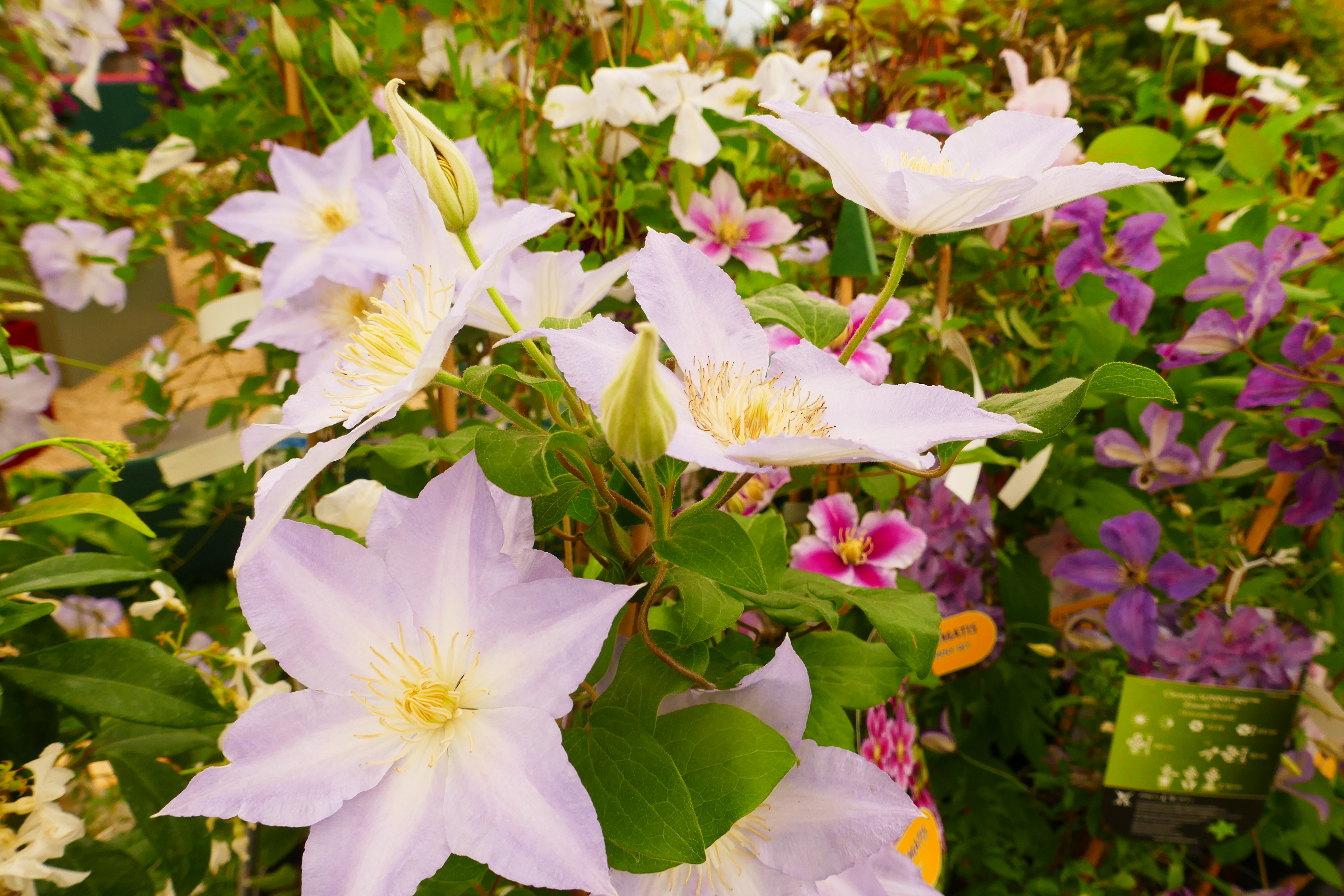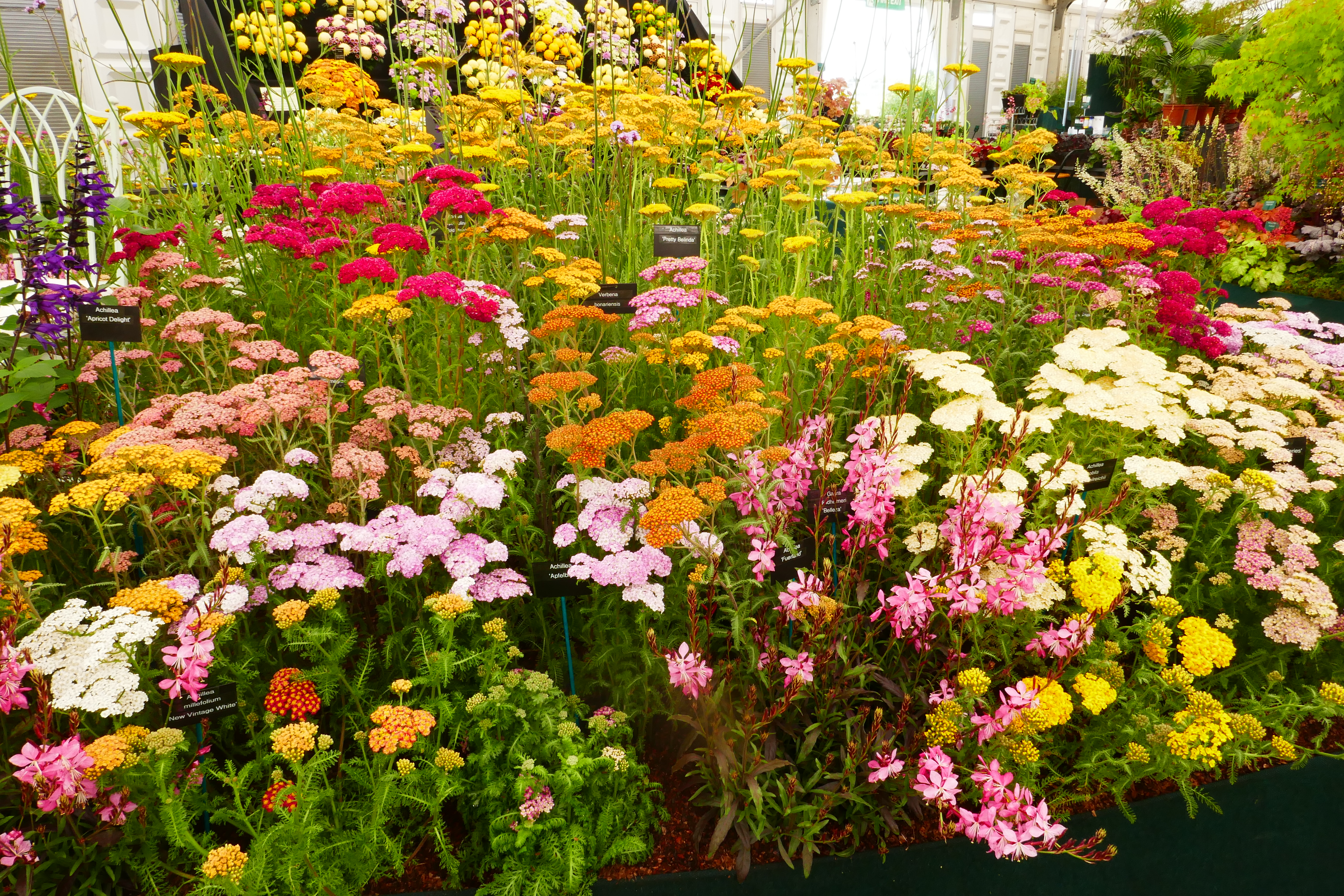 In the flower marquee and on outside stands, there are a huge number of top-notch nurseries displaying their range. This is a great way to buy good quality plants, especially if you want something specific or a bit out of the ordinary. For instance, Downderry Nursery displays more different cultivars and colours of lavender than you might have thought existed. Achillea, so popular in the show gardens and also very popular with pollinators, are displayed in an array of colours that open your eyes to the possibilities of using them. There are many new varieties of plants, too. Specialist nursery Thorncroft Clematis launched several new clematis, including ‘Spotlight’, above, an ethereal blue large, early flowering variety that managed to stand out in a very diverse and already crowded market. A vibrant and alluring new crocosmia called ‘Firestarter’ was being launched on the Hardy’s Cottage Garden stand. Rosemary Hardy is well known for the many new plant varieties she’s introduced and often bred (though the crocosmia was bred by Paul Lewis, who also bred ‘Paul’s Best Yellow’). Echinacea ‘Pink Tip’ was also on the Hardy’s stand.