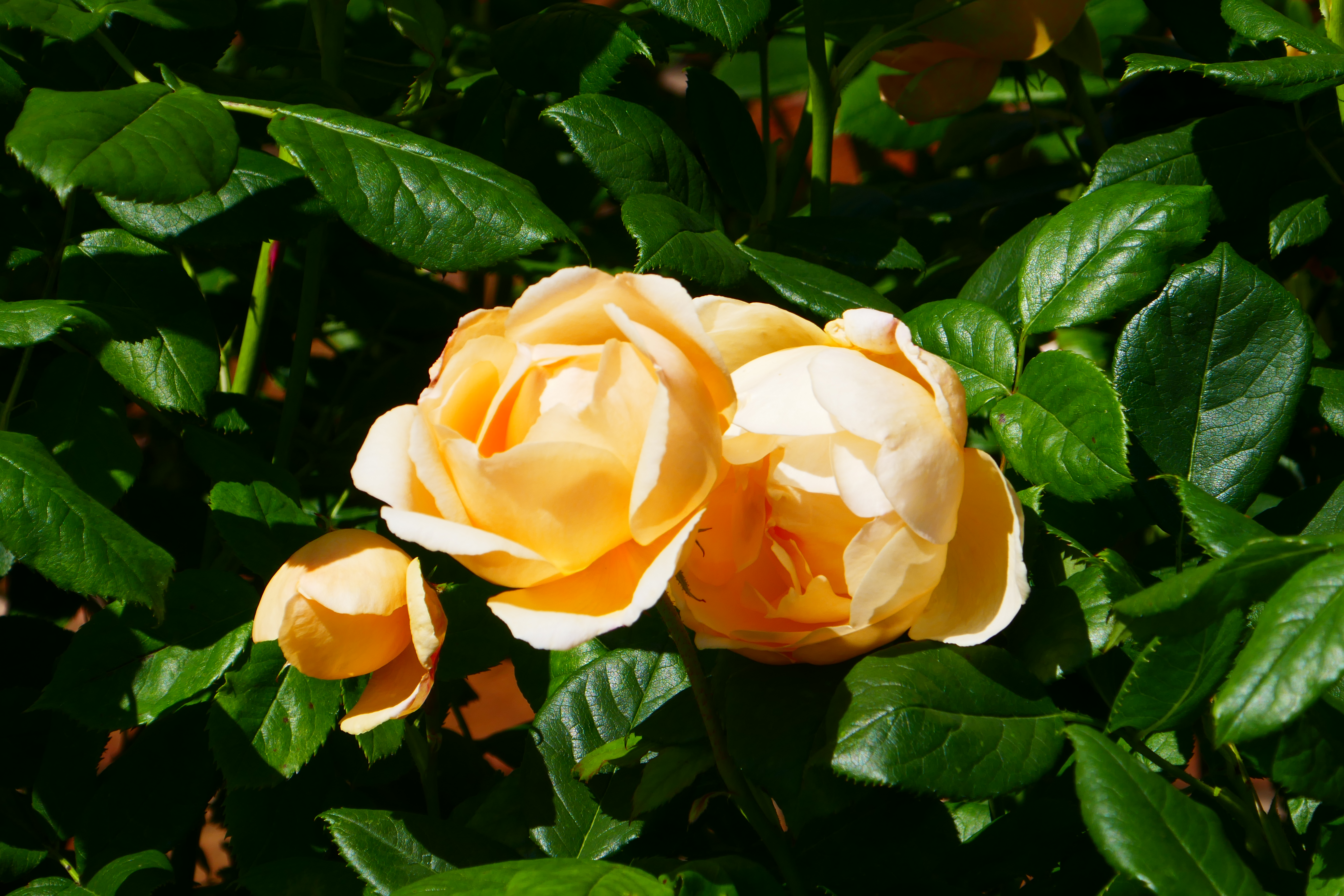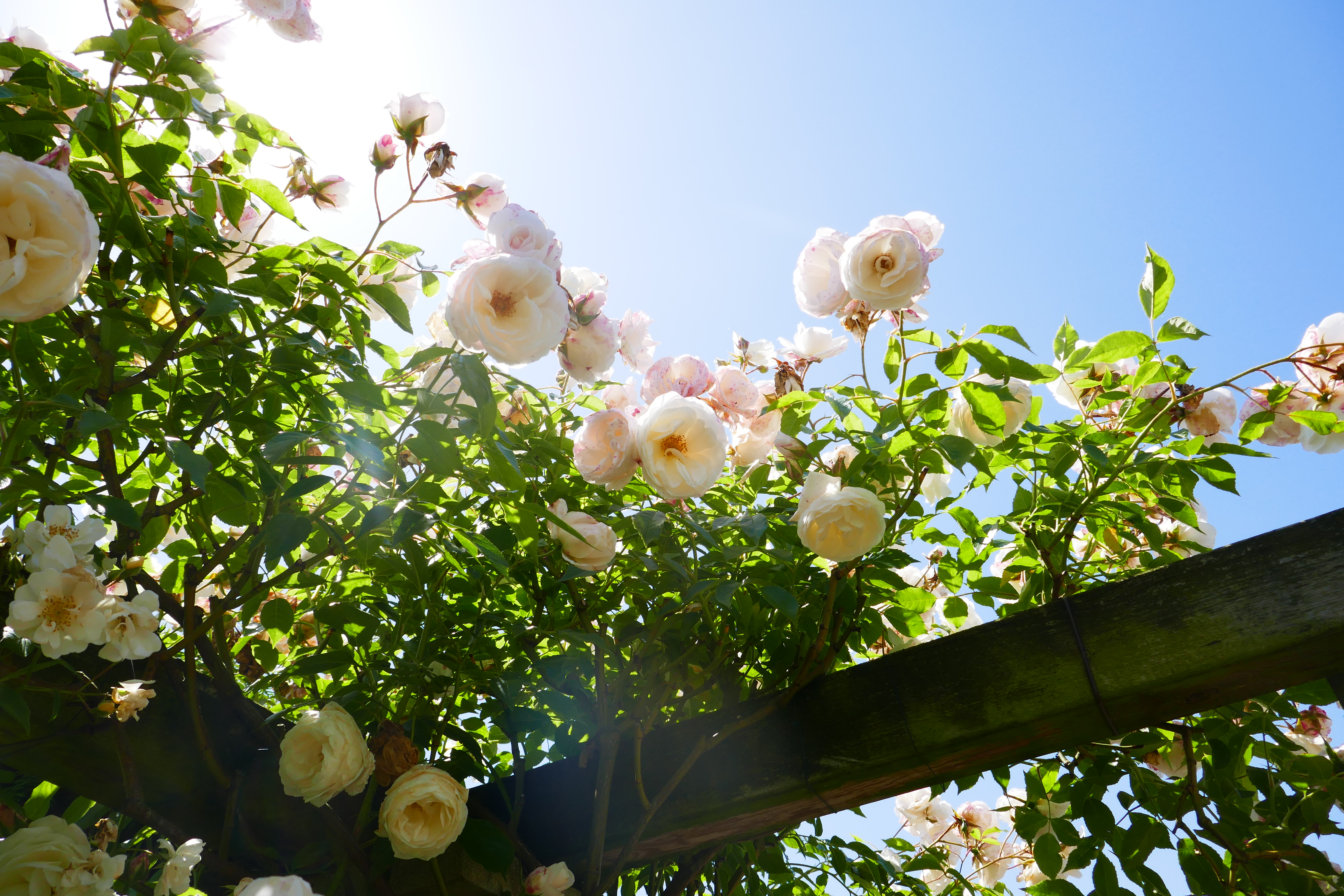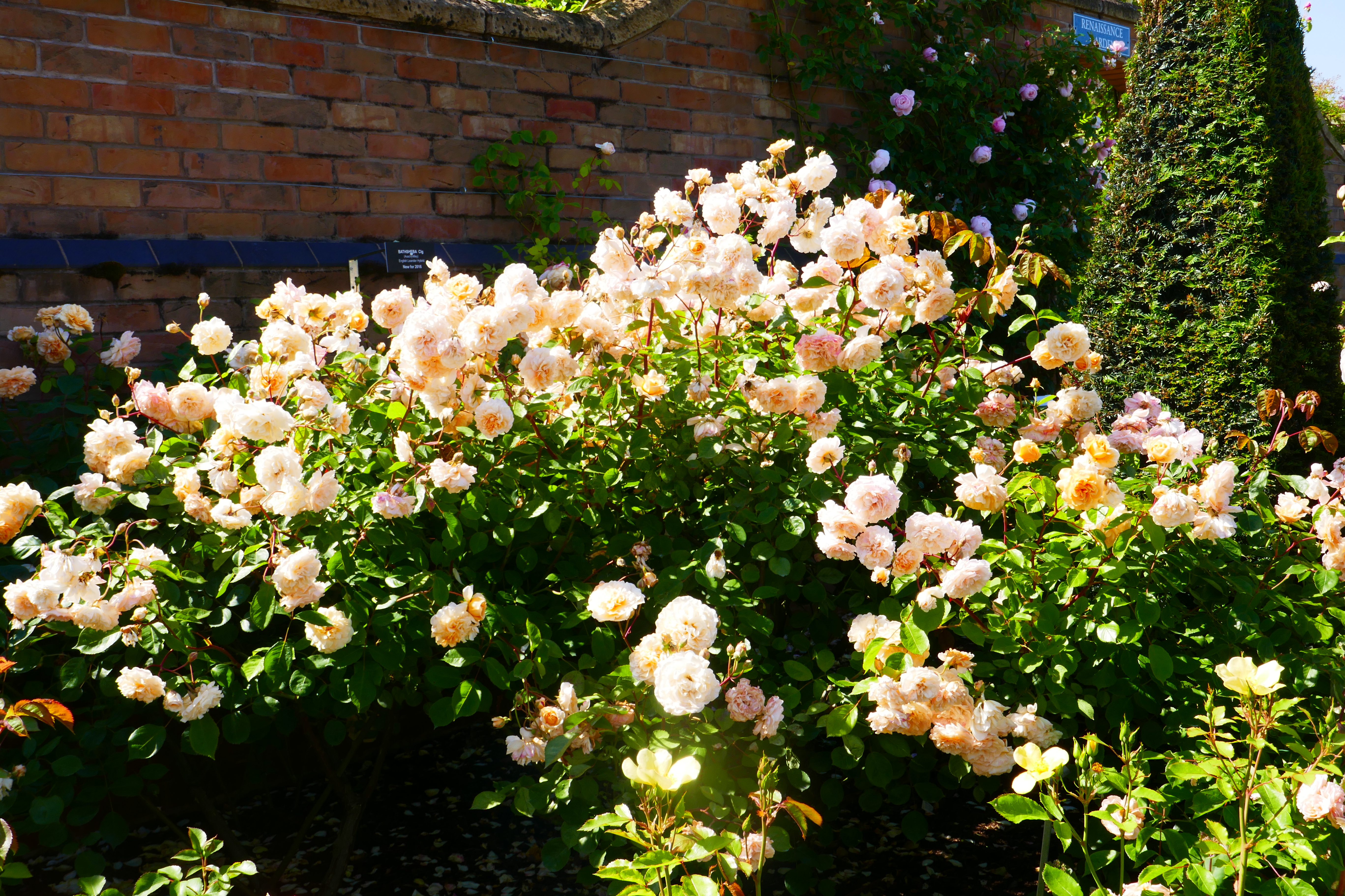 ‘Vanessa Bell’, ‘Mountain Snow’, ‘Buff Beauty’ and ‘Wollerton Old Hall’
