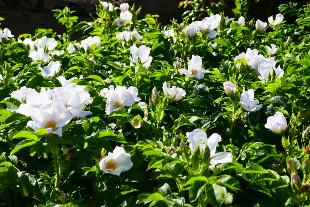 Not all the roses in the garden were bred by David Austin. This is Rosa rugosa ‘Alba’. It has terrific scent, is very attractive to bees and forms large hips after the flowers finish. It’s quite large at over 1.5m high and wide, but if you’ve got the space, what better way to fill it?