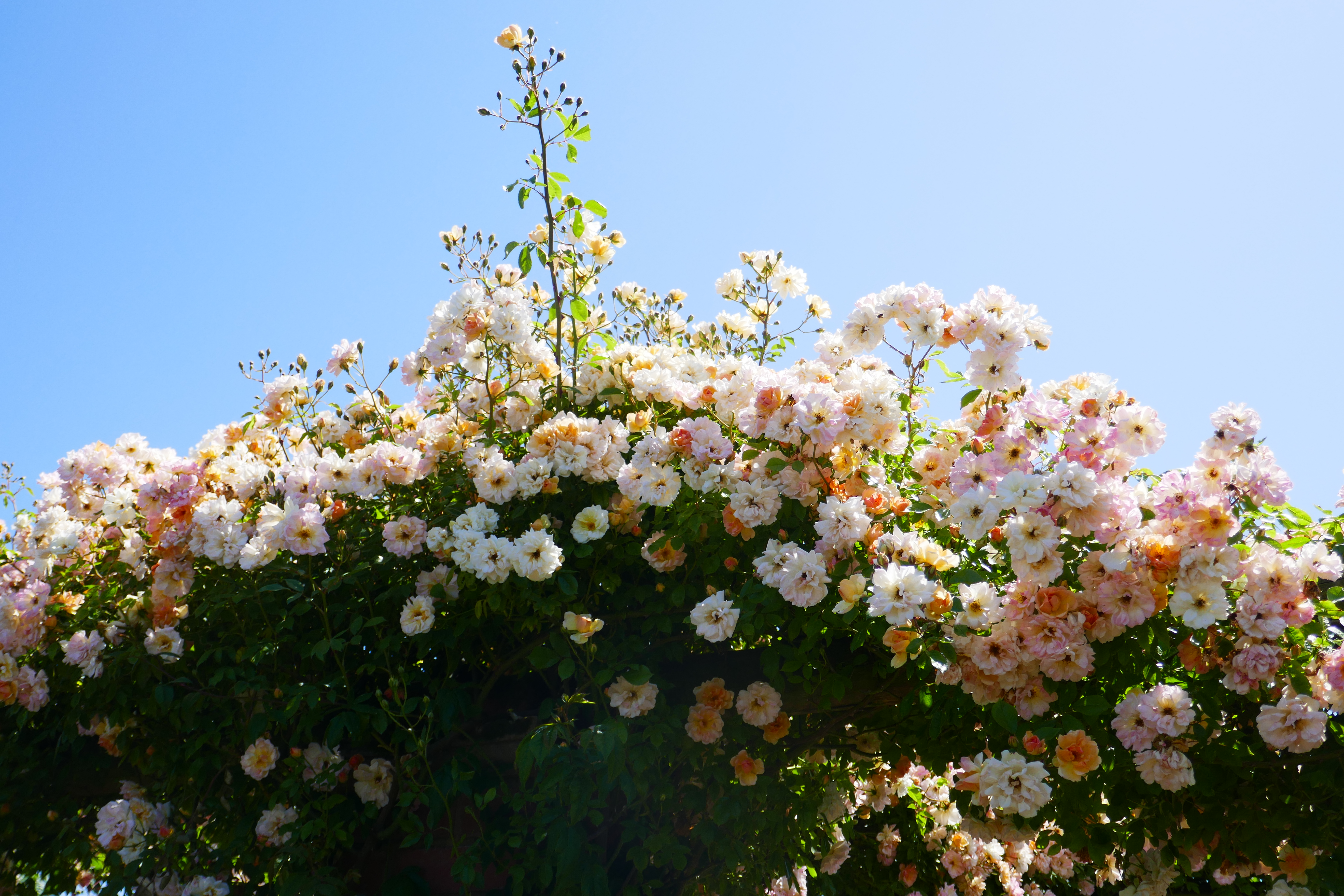 The pictures above show some of the many magnificent climbing and rambling roses that were on display in the garden. What’s the difference? Ramblers are usually more vigorous and often only flower once, whereas climbing roses are usually smaller and will often repeat flower. There are, of course, exceptions. If you have a small garden this can be one of the best ways to work roses in as there’s usually somewhere you can get some vertical space. Try building a pergola, adding trellis and wires to a fence or simply using a large obelisk as a support (for a climber, probably not for a rambler).