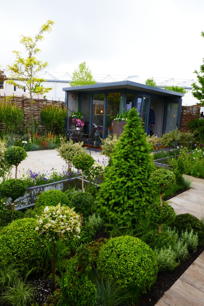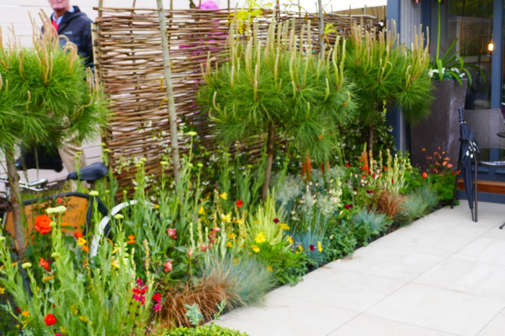 There were so many show gardens its hard to know where to begin, and the standard was very high. The High Line garden (last picture) was superb. I’ve been to the High Line in New York and this garden captured the spirit of it very well, even though it was shrunk to fit into a much smaller space. The Getaway Garden (first picture) a simple design for a small, linear garden which is what so many people own. It was beautifully done and brought to life with lush planting that would be easy to maintain. The Children with Cancer UK Strength of Humanity garden (bottom left or fourth picture), featuring a bell, which is rung by the children who have completed their often gruelling treatment. The Moroccan-influenced Morgan Oates garden (fifth picture), designed as an after-work retreat that would be quite a treat to come home to.