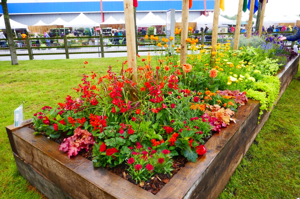 The car park and surrounds of the Birmingham NEC might not seem to be the most attractive place to hold a garden show, but they allowed plenty of space for a huge number of show gardens, a large area of raised beds (Beautiful Borders), a display of wheel barrow planting produced by schools, a huge floral marquee, a ‘plant village’ of excellent nurseries, and that’s before you go inside to see all the stands of garden buildings, tools, irrigation equipment etc etc. A mind boggling amount to see and none of it felt overcrowded
