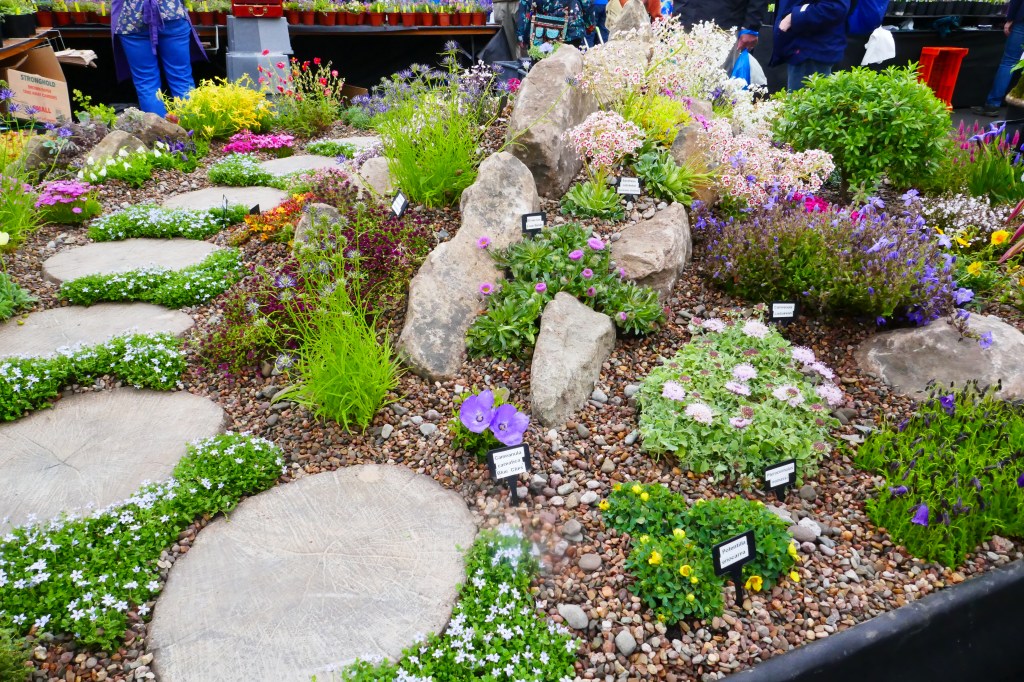 There was much more to see in the floral marquee. A huge pyramid of colour in the centre, with four satellite pyramids, all decked out with new varieties of plants. Nurseries showcasing their plants in small stands and displays such as the alpines from Ice Alpines Nursery (surely these are due for a comeback – they’re perfect for small gardens), stunning plants such as Thalictrum ‘Splendide’ and Astilbe sinensis ‘Vision in Red’ from Moore and Moore plants.