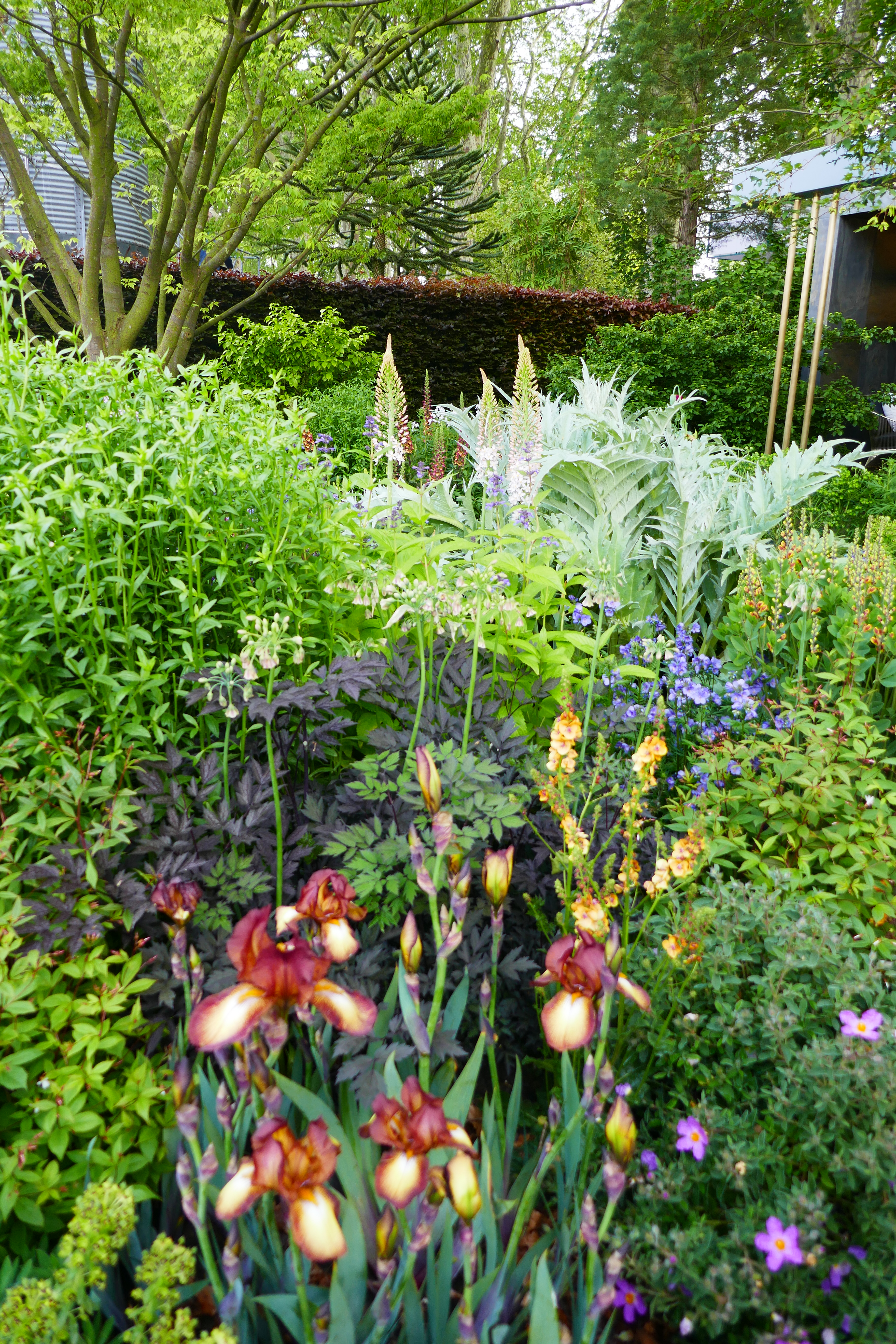 Undeniably the most unique thing about the Chelsea Flower show is the number of show gardens, and the scale of them on Main Avenue. No penny pinching here. Strangely (to me at any rate) these are the feature that probably attract most criticism of the show. The trend this year for woodland gardens mean that some of them didn’t contain many flowers, it’s true, and it is debatable whether a lock, no matter how cleverly constructed, constitutes a garden at all. But for sheer bravado and theatrical display these show gardens would be very hard to beat. And a designer like Chris Beardshaw can combine his skill at designing a landscape with a real passion for what most of us look for in a garden; flowering plants. His garden was my favourite, creating a sublime display with plants that, for the most part, you could probably find in any good garden centre. Inspirational indeed.