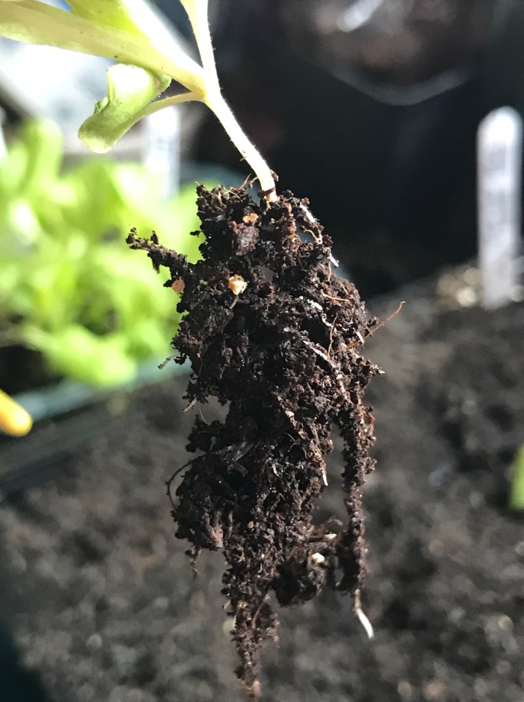 You see the stems and leaves of plants developing above the ground so you know what progress they’re making. Under the soil the roots will also be developing; branching and spreading through the soil. The plant will strike a balance in the amount of energy it expends on developing roots in proportion to the energy it is putting into the development of the stem and leaves. It’s difficult to move a seedling without doing some damage to the roots, so pricking them out slows down the growth process temporarily because the roots will usually need to recover and get established again. You might notice that any seedlings left in the tray you sowed them into will grow faster for a while than the ones you’ve pricked out. Over time the roots of the seedlings you moved will recover and the top growth will start to catch up, and in the long run they’ll do better because you’ve given the roots more space and they’re growing without the competition from the other seedlings.