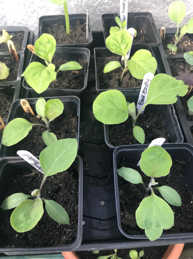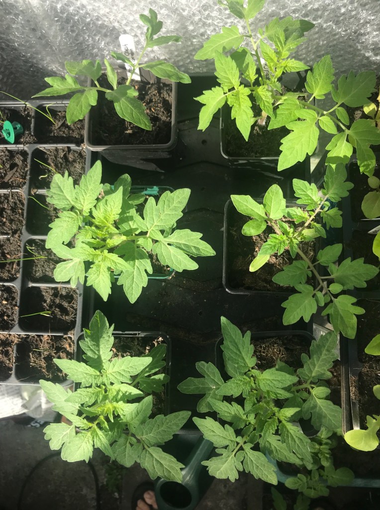 When I checked all my young plants on 26th April, nothing was quite ready although the tomatoes are nearly there. That’s fine, because since then the weather has turned cooler and we’ve finally had some rain. I’d rather plant into damp soil when the weather is warmer again, so I’m not in a hurry to plant anything outside yet.