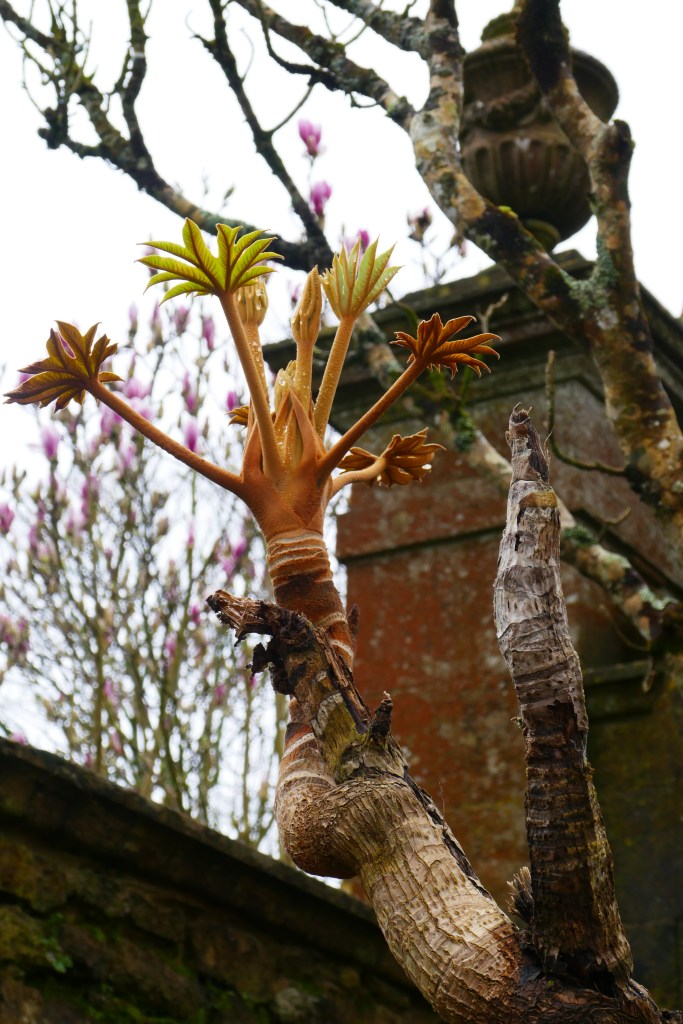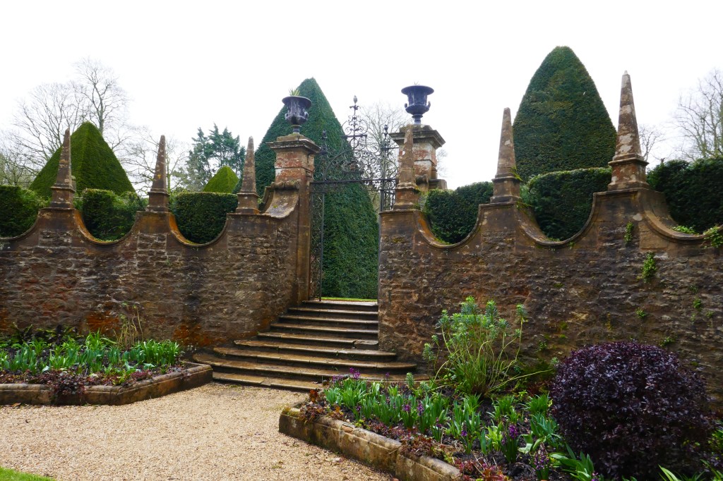 Visiting so early in the year it was a bit difficult to image what the gardens would look like in later seasons with more greenery and a full compliment of flowers. One of my favourite features was the bare bones of the pleached trees which would be hidden under the leaves later in the year, of course. But then I also loved the layout, the views through beautiful gates from one courtyard garden to the next, the variety of styles and the planting. As I mentioned, I believe advice on planting was given by Sir Harold Hillier when the garden was being restored in the 1960s, and I’m sure this explains what appears to be a very interesting mix of shrubs and trees, many of which would be looking their best later in the year.