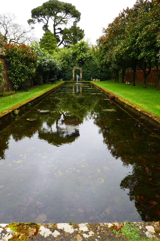 Very close to the lime walk was the canal. That seemed a bit of a grand title for what was essentially a long, narrow pond, but on such a still day this placid water feature looked elegant and sophisticated. Beyond it was the walled vegetable garden. There was a lot of activity in here with gardeners hard at work mulching, though at the start of March the beds were almost bare except for some colourful chard, which a visiting dog kept eating. I must have been distracted by that and by the bare beds, because I don’t seem to have taken any photos!