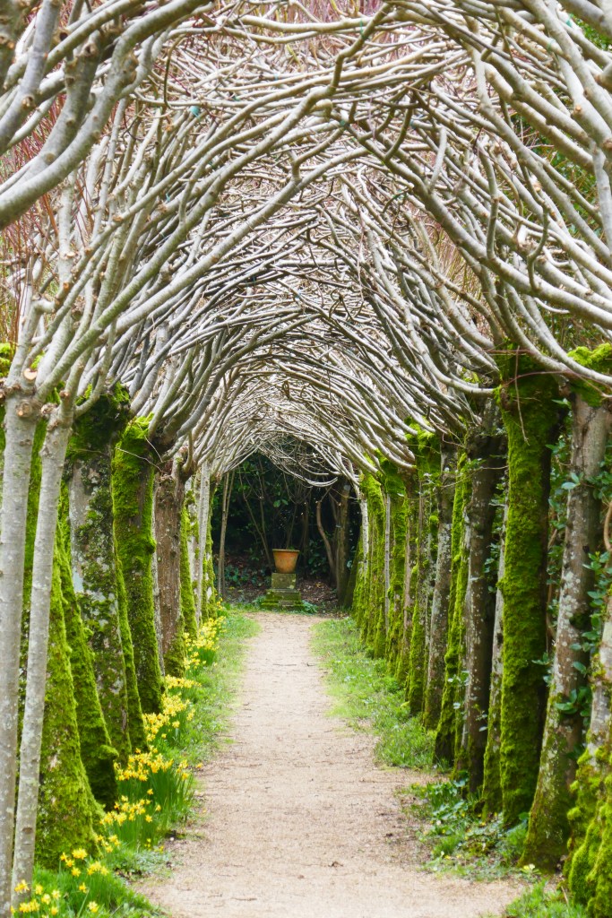 Going through the next gate on the route took me out into the Queen Victoria garden and probably my favourite feature of the whole garden, The Lime Walk. What a fabulous creation. Mossy at the bottom, an eerie tangle of pale branches forming the roof of a tunnel overhead, it was clever and atmospheric. I’m sure it also looks good when trees are in leaf, but I couldn’t help feeling that the starkness of the structure made this feature more memorable than any leafy bower would be.