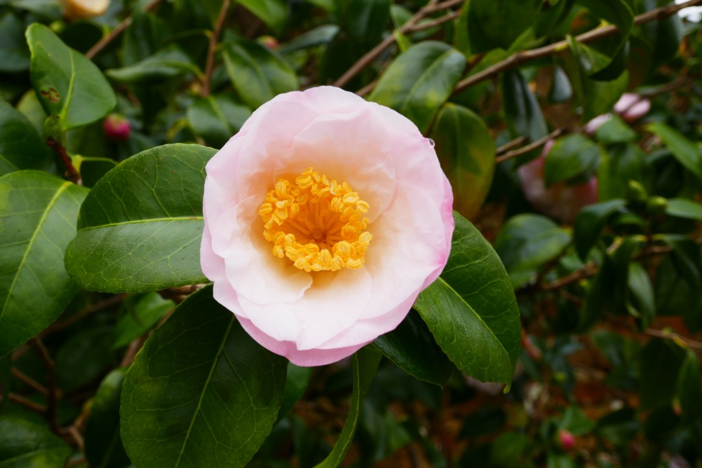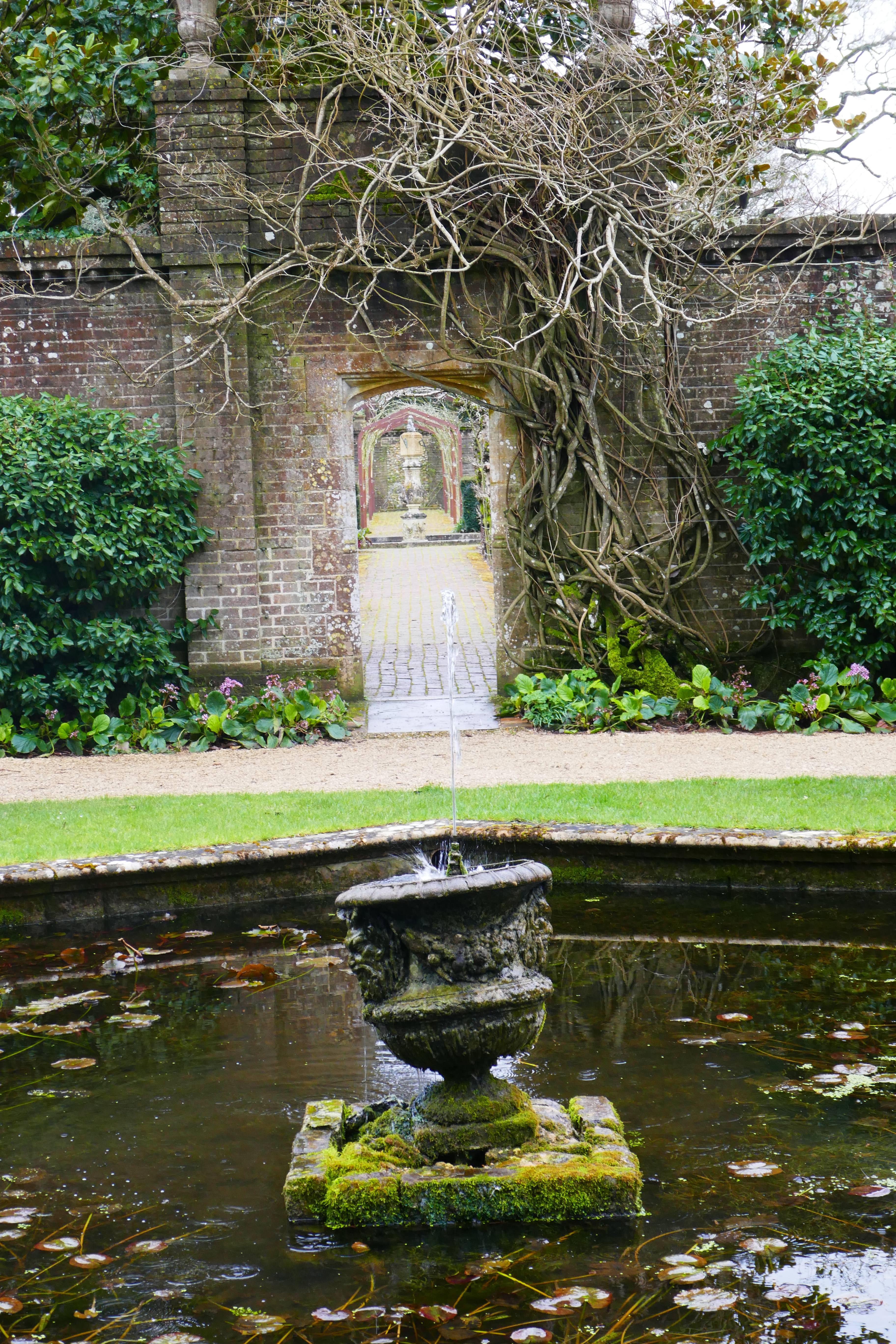 Crossing back over from the veg garden I found my way into the private garden, another walled courtyard with a sunken pond at its centre and an interesting side view of the house. The planting here was quite varied, with hellebores and camellia blooming and magnolia just coming into flower. Also there were more enticing views.