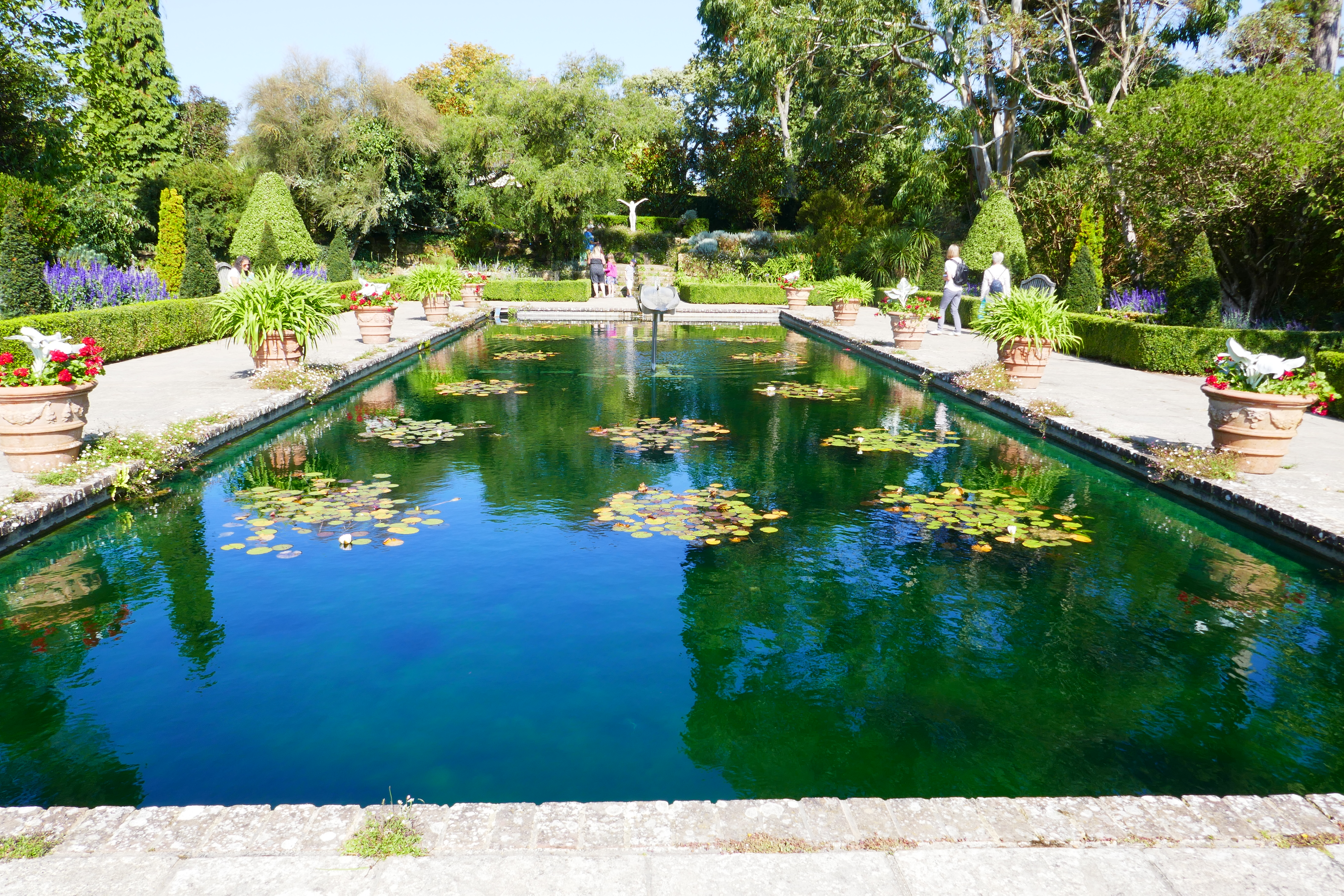 Chris Beardshaw has also devised a new planting scheme for the Italian Garden, an area originally created from a tennis court in the 1980s. Smart and stylish, this gorgeous garden combines the structural elements of neatly clipped hedges and formal standard trees with large pots of agapanthus and red pelargoniums around the pond, under which lie tumbling tussocks of self-sown Erigeron karvinskianus. Behind the hedges clumps of salvias and perovskia keep the colour going into autumn while the fountain in the middle of the pond is fun to watch as the leaves fill with water and then tilt to tip it back into the pond. The effect is relaxed and distinctly Mediterranean, especially on a sunny day.