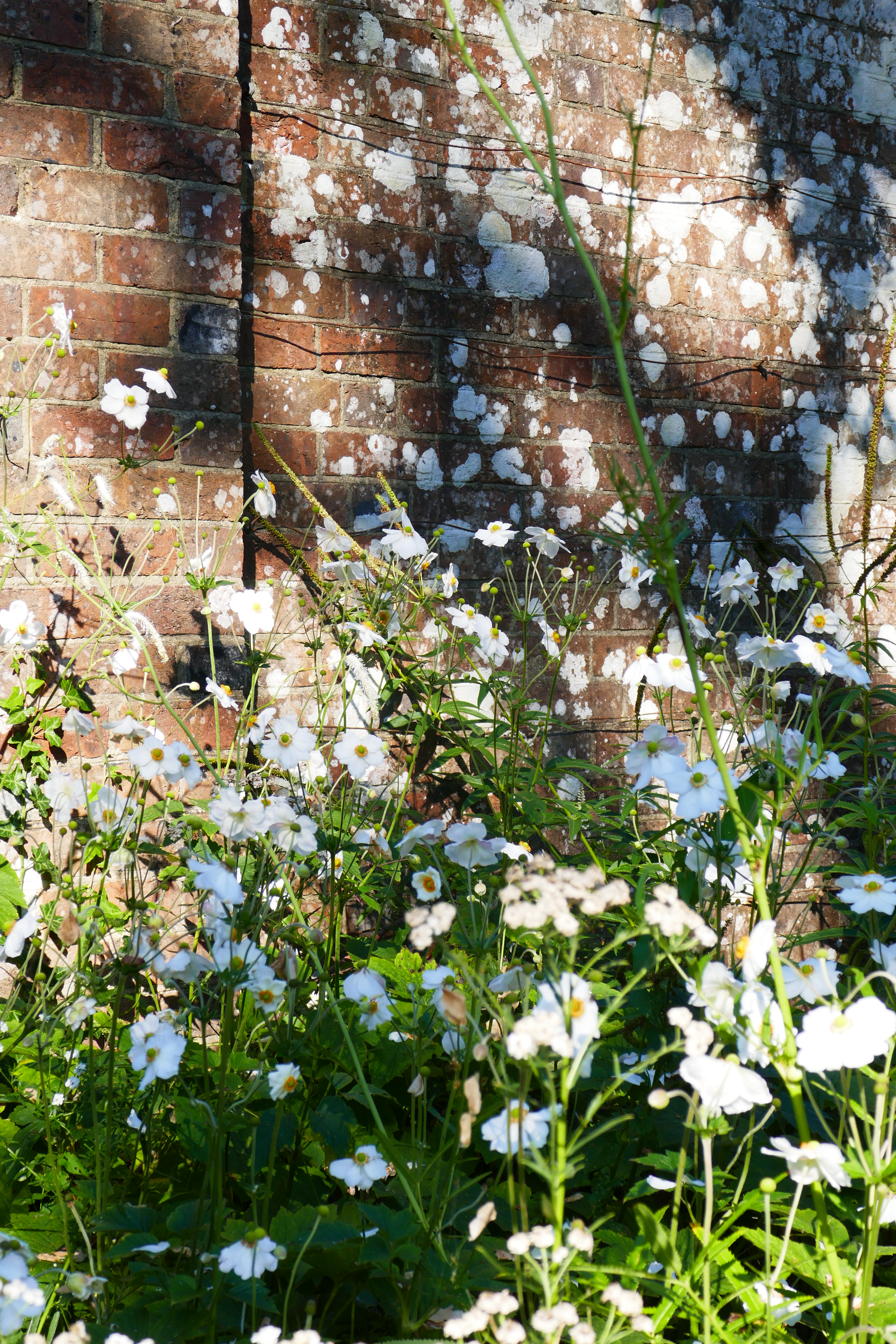 It’s a riot of colour, but just in case you start to feel overloaded with all the drama, you can cross the path to the dappled shade of the white garden, where white flowered asters and Japanese anemone, amongst others, create a completely different, quieter mood.