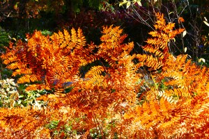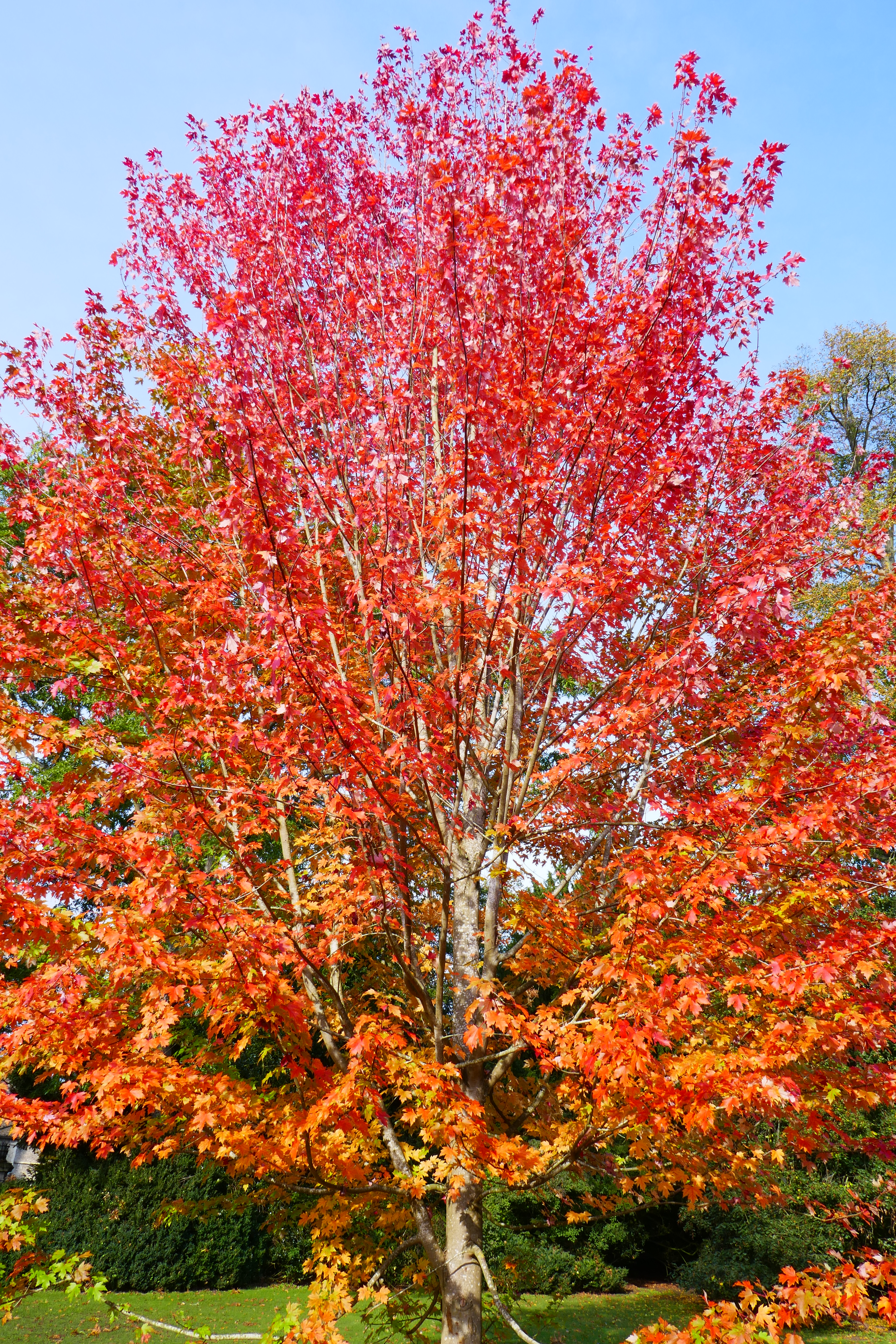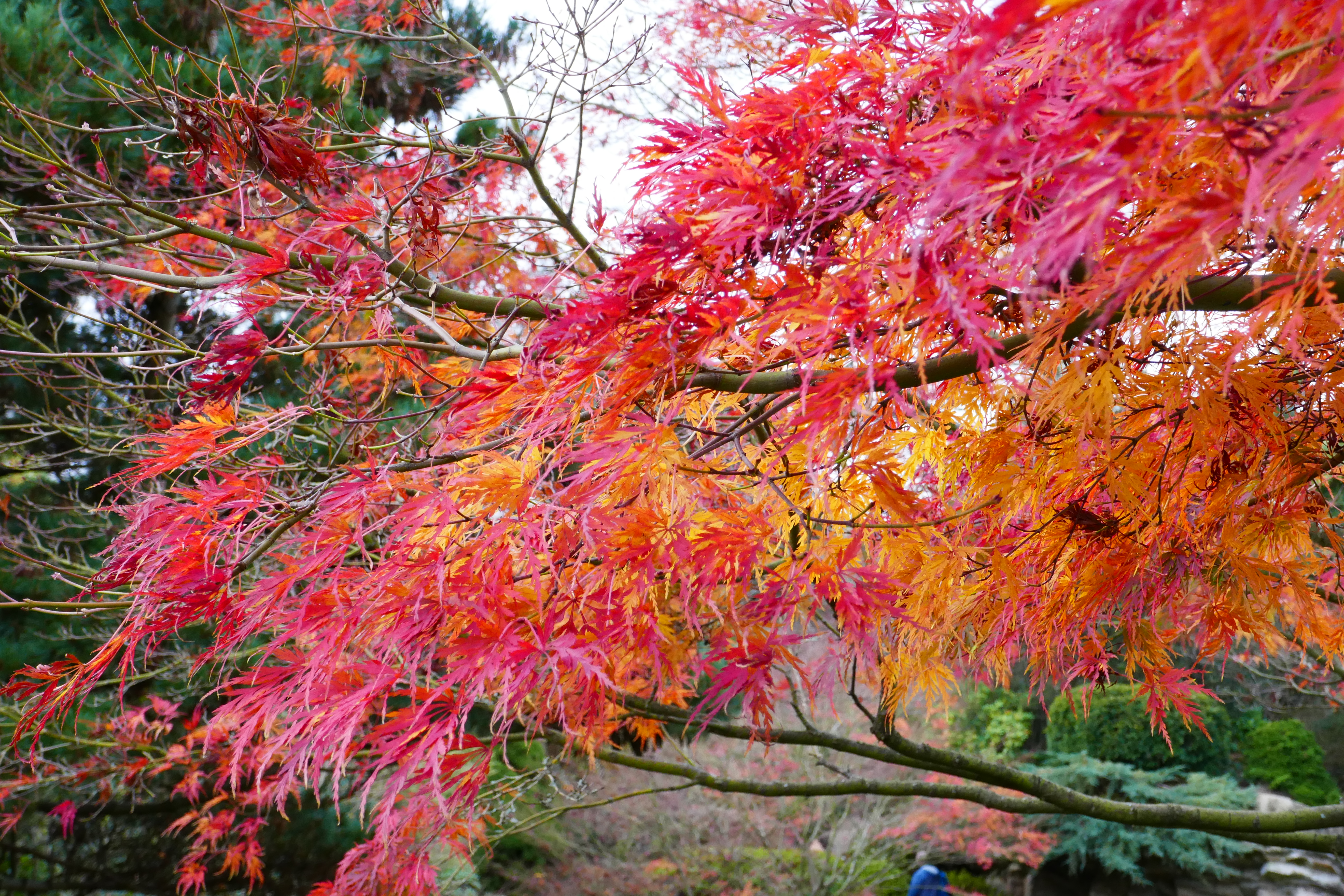 Some trees are subtle throughout, while others are far more flamboyant. It’s easy to spot Sweet Gum, Liquidamber styraciflua, not only because it has vibrant colour but because it varies so much throughout each tree. The leaves are similar in shape to maples (acers) but that mix of colours makes it easy to tell them apart in the autumn. And of course many of the maples themselves are amazingly vivid, creating some of the most exuberant displays. Angelesey Abbey has a good supply of these, especially in the winter garden where I took most of these pictures.