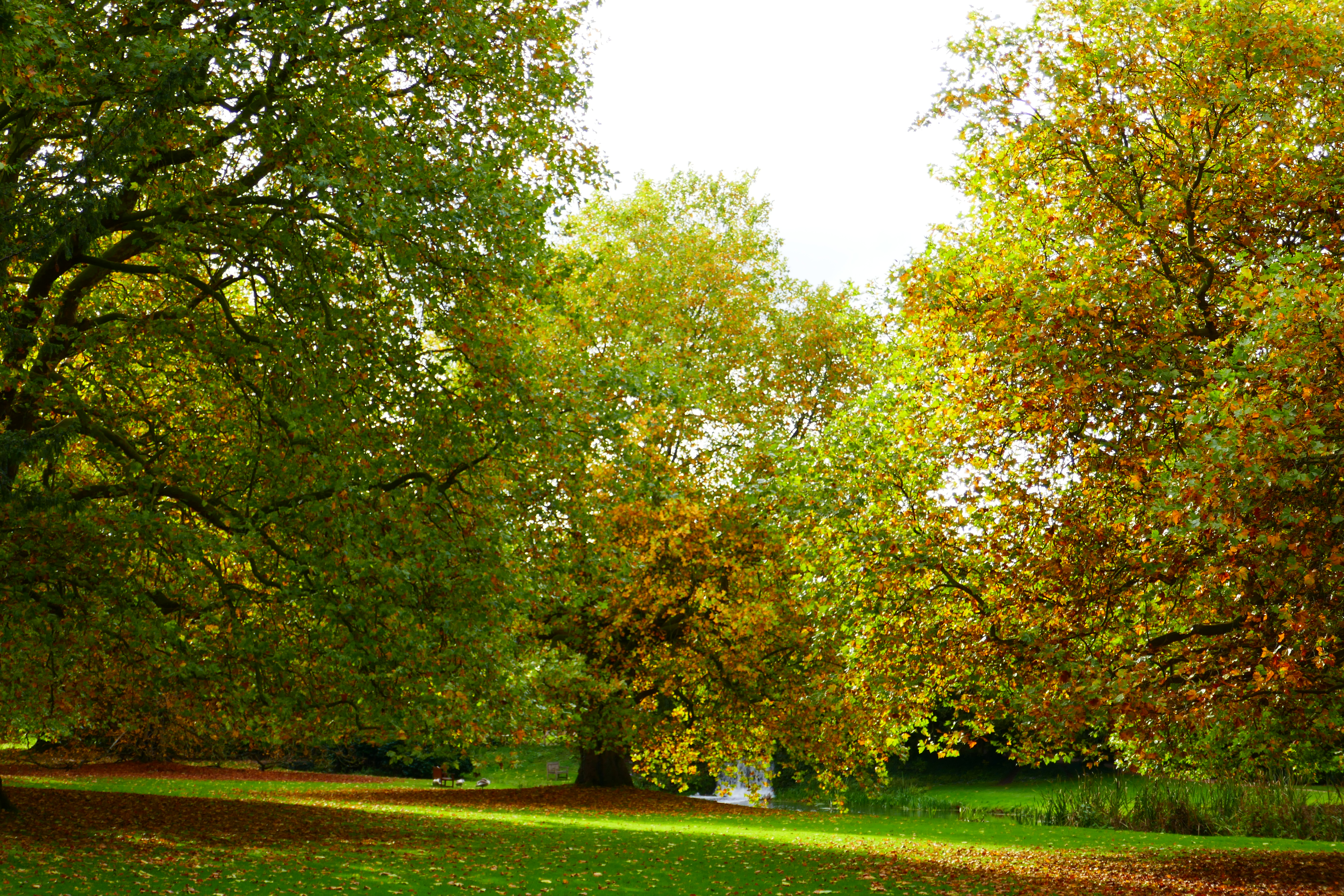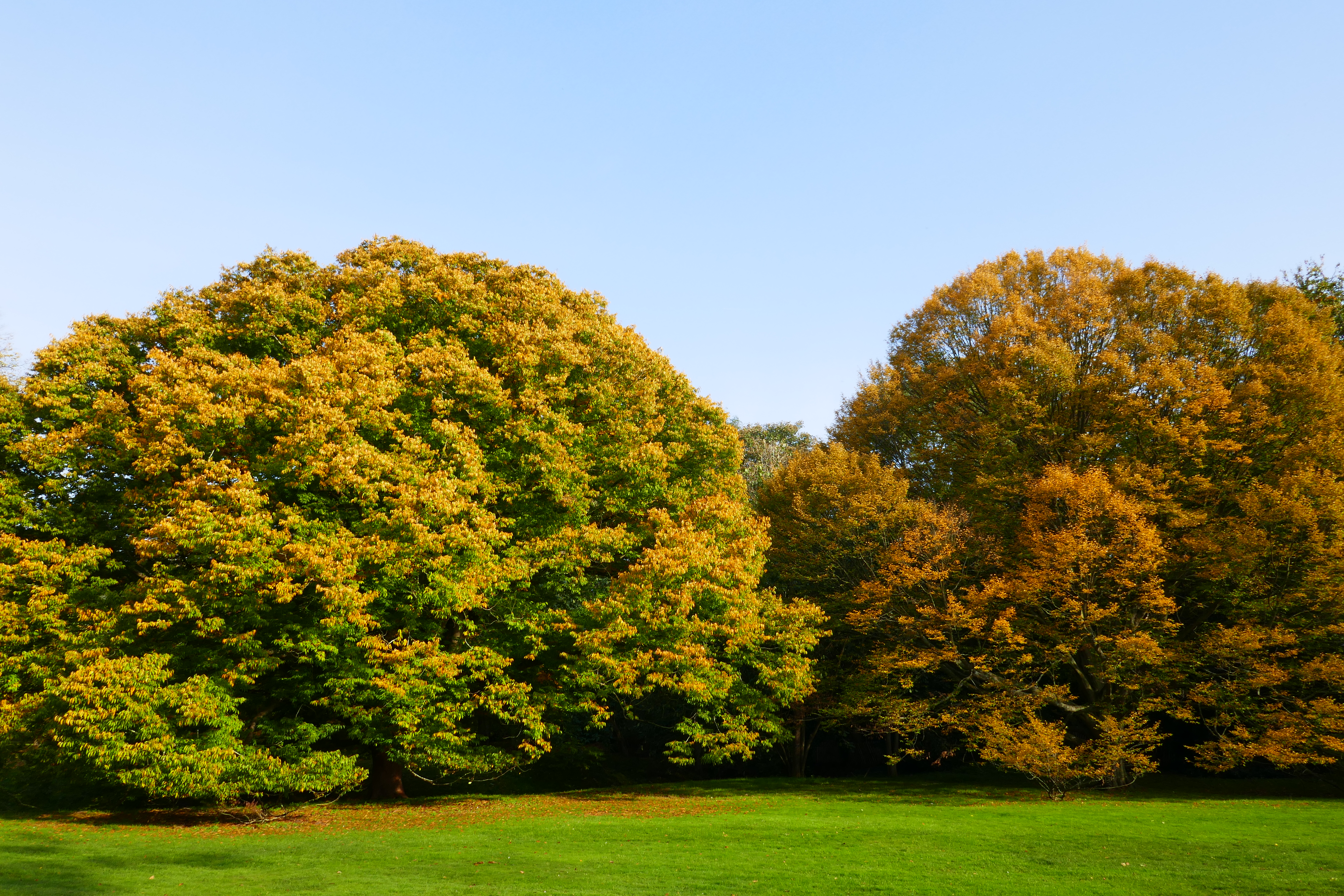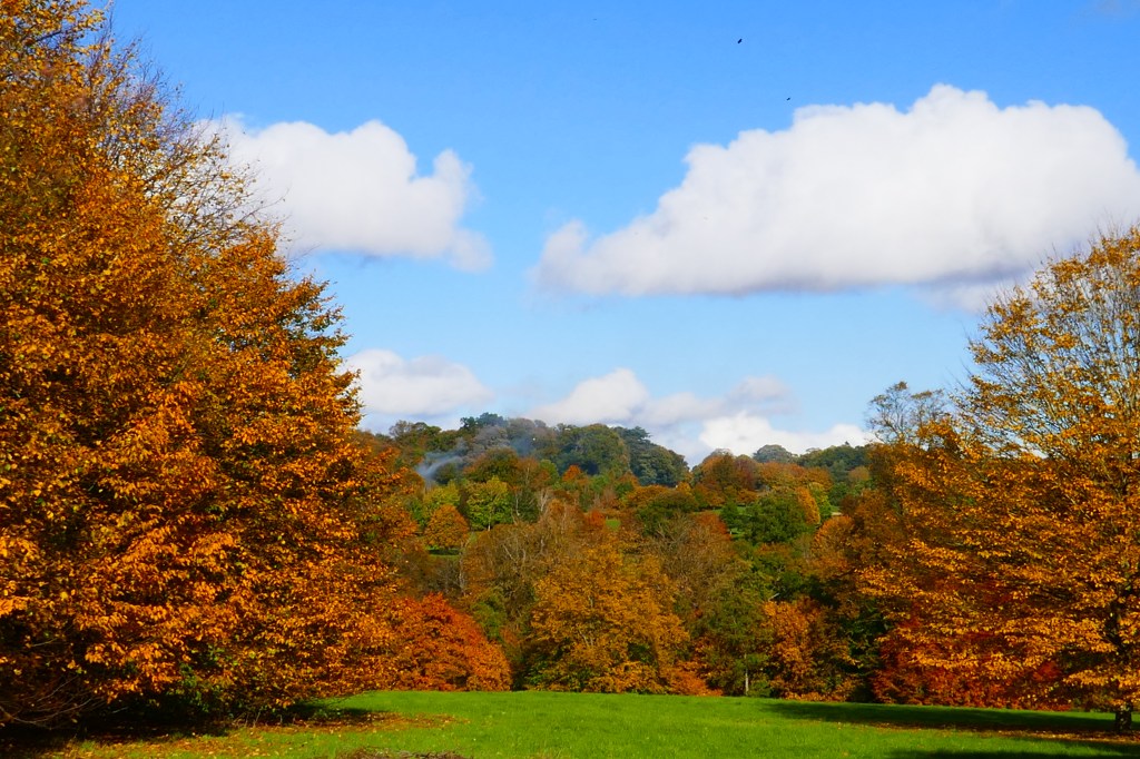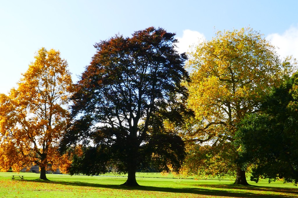 ….. as the leaves lose more of their green pigment, and the other pigments that have developed during the summer have a chance to show through. Rich, warm, golden browns, yellows and reds that highlight the emerald green of the grass. (The first two pictures are views at Audley End, the third is at Anglesey Abbey).