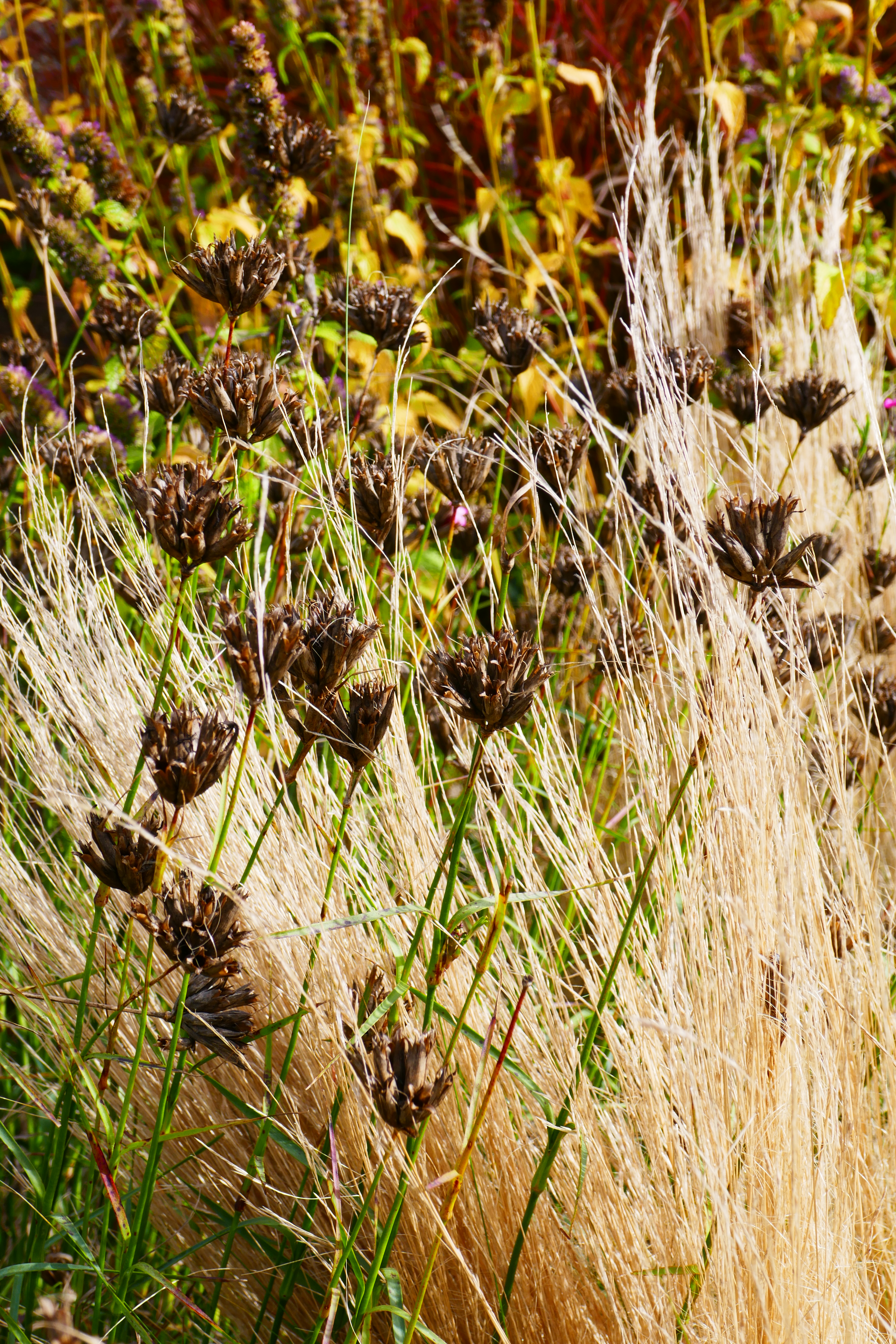 Even as flowers fade, gardens don’t need to tidied up too much. Seed heads and dried grasses like these in the walled garden at Audley End are worth keeping so borders look full and attractive right through the winter. Birds will enjoy the seeds, too, and the stems can make good nesting sites for overwintering insects.
