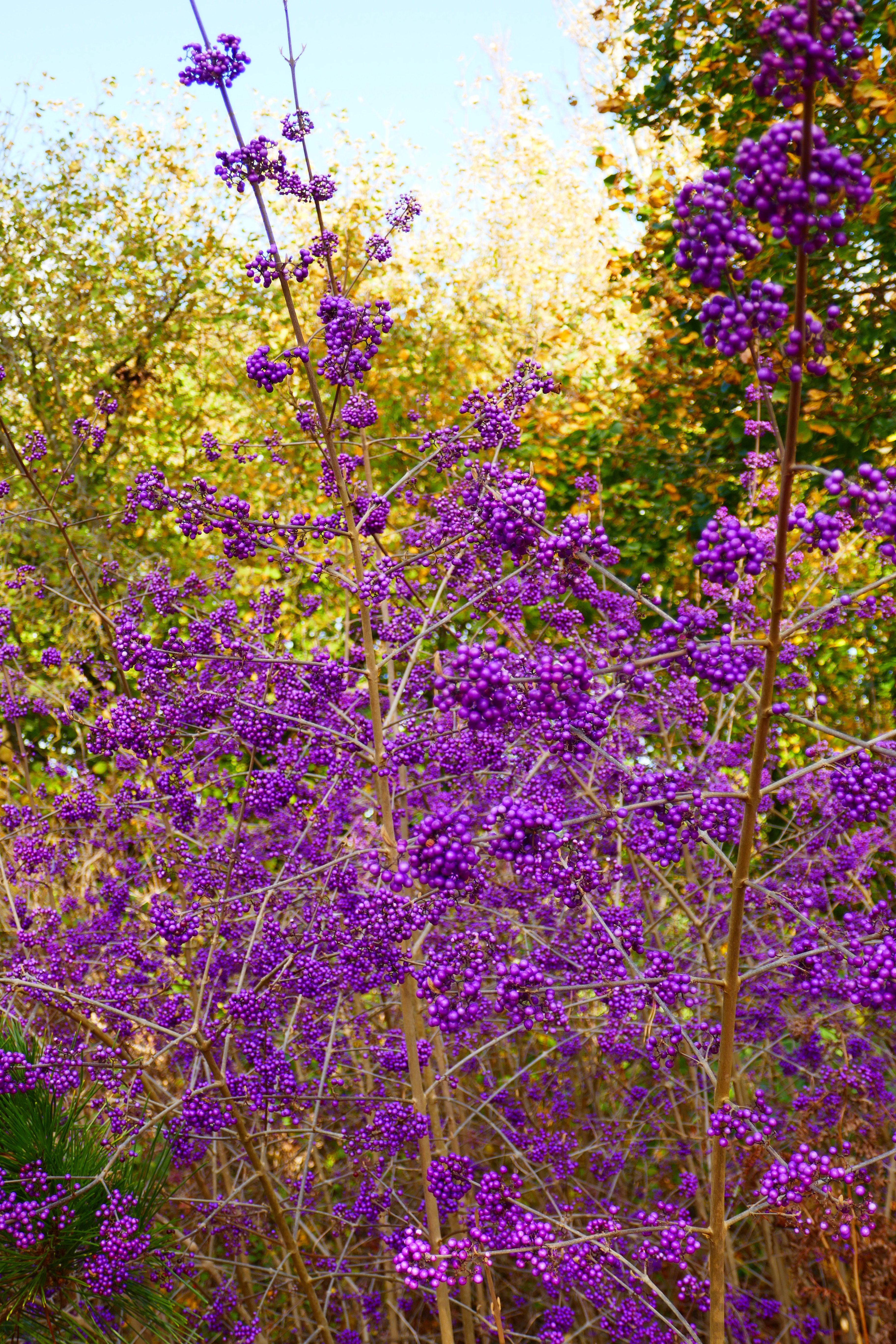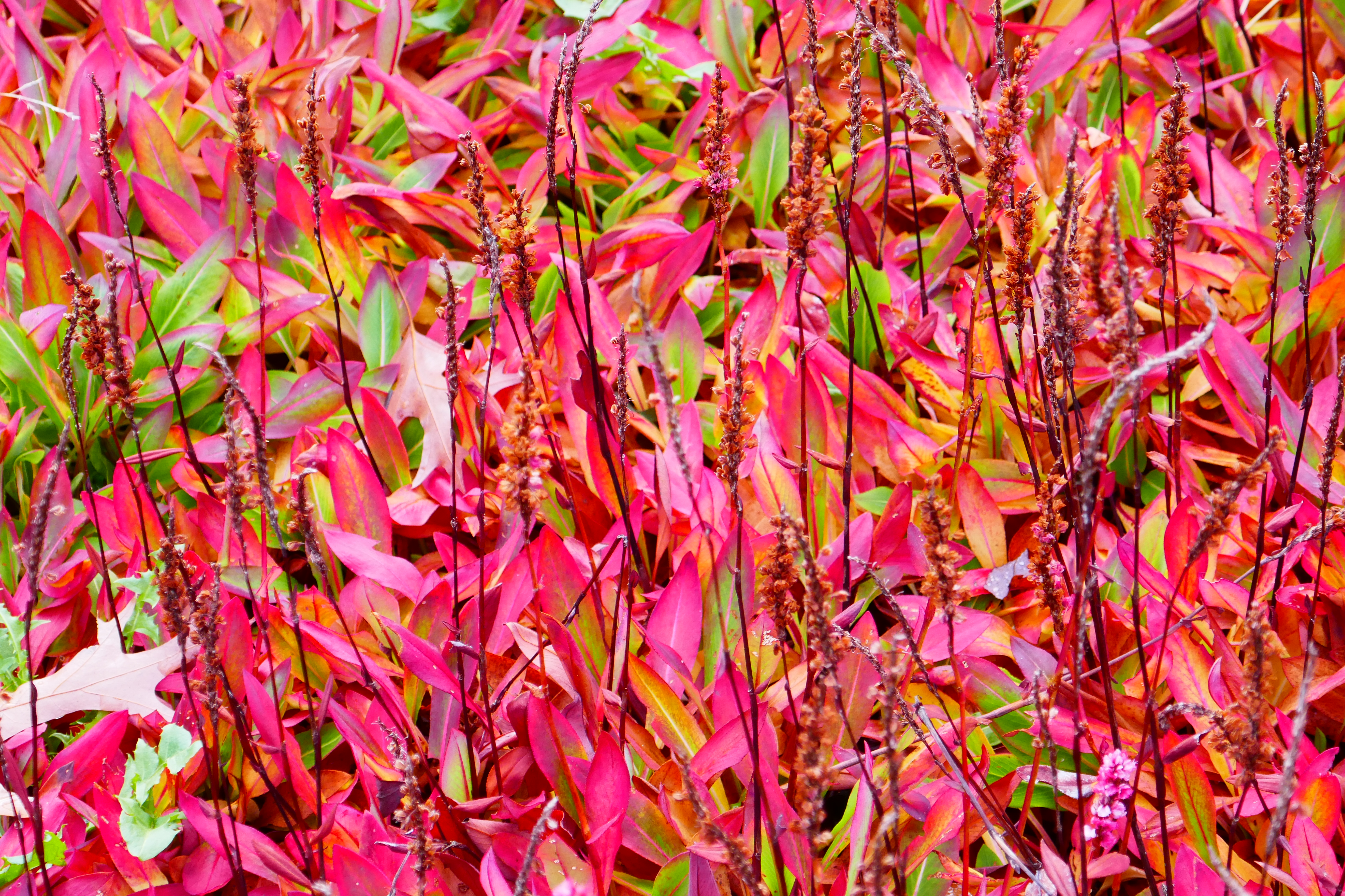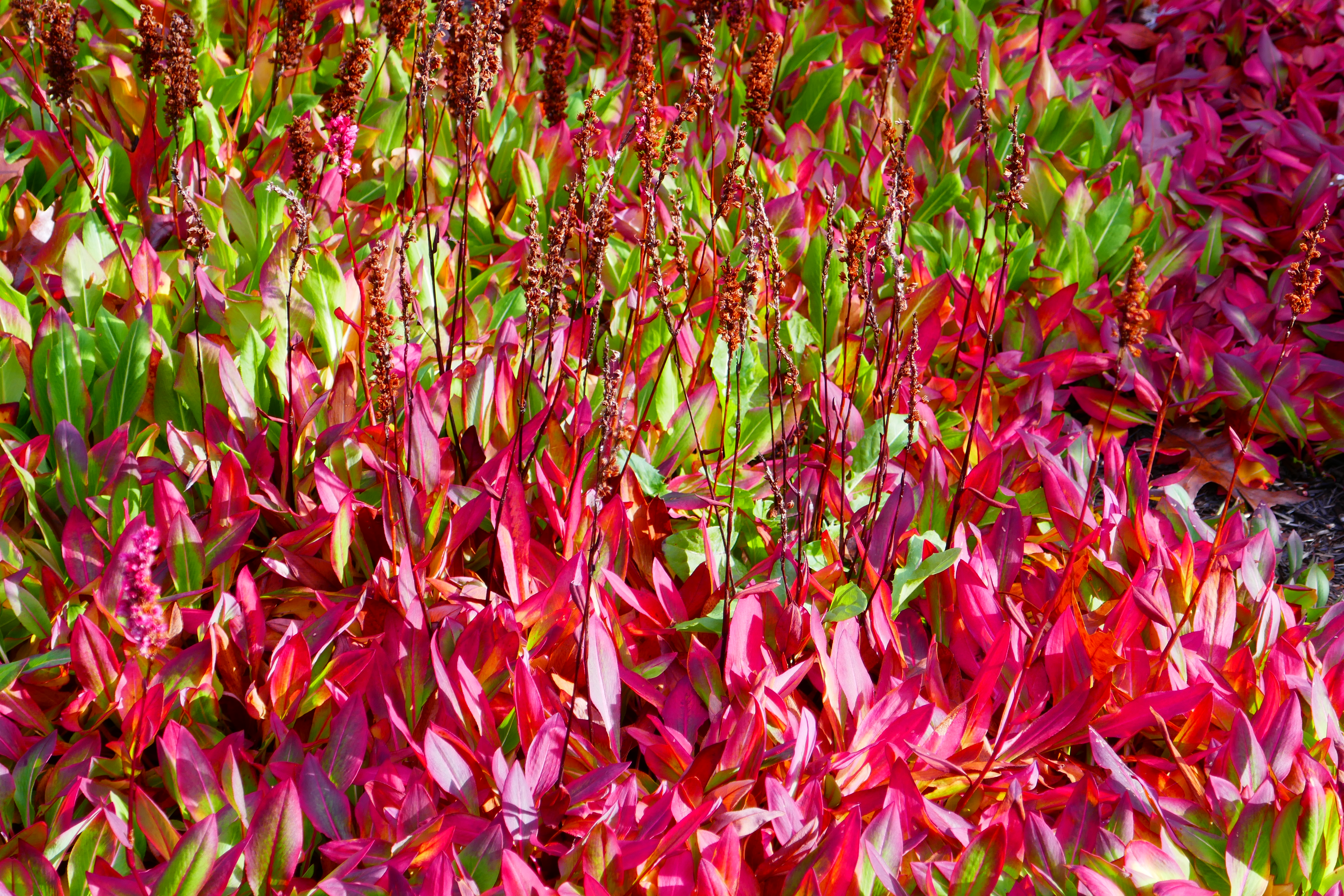 In early autumn with frosts some way off there were still plenty of flowers out in most of the country. Dahlias were at their best and with their popularity still on the rise, quite a lot of gardens now have big displays. The dahlias pictured below were at Angelsey Abbey and Audley End, while the verbena bonariensis teamed with bleached out tassels of Miscanthus nepalensis were at Kew Gardens. At this time of year berries are ripe and haven’t yet been eaten by birds – the metallic purple berries of Callicarpa were at RHS Wisley – and as the nights get colder there can be a lot of colour in the foliage of perennials, such as these low-growing Persicaria affinis in the current AGM trial at RHS Wisley.