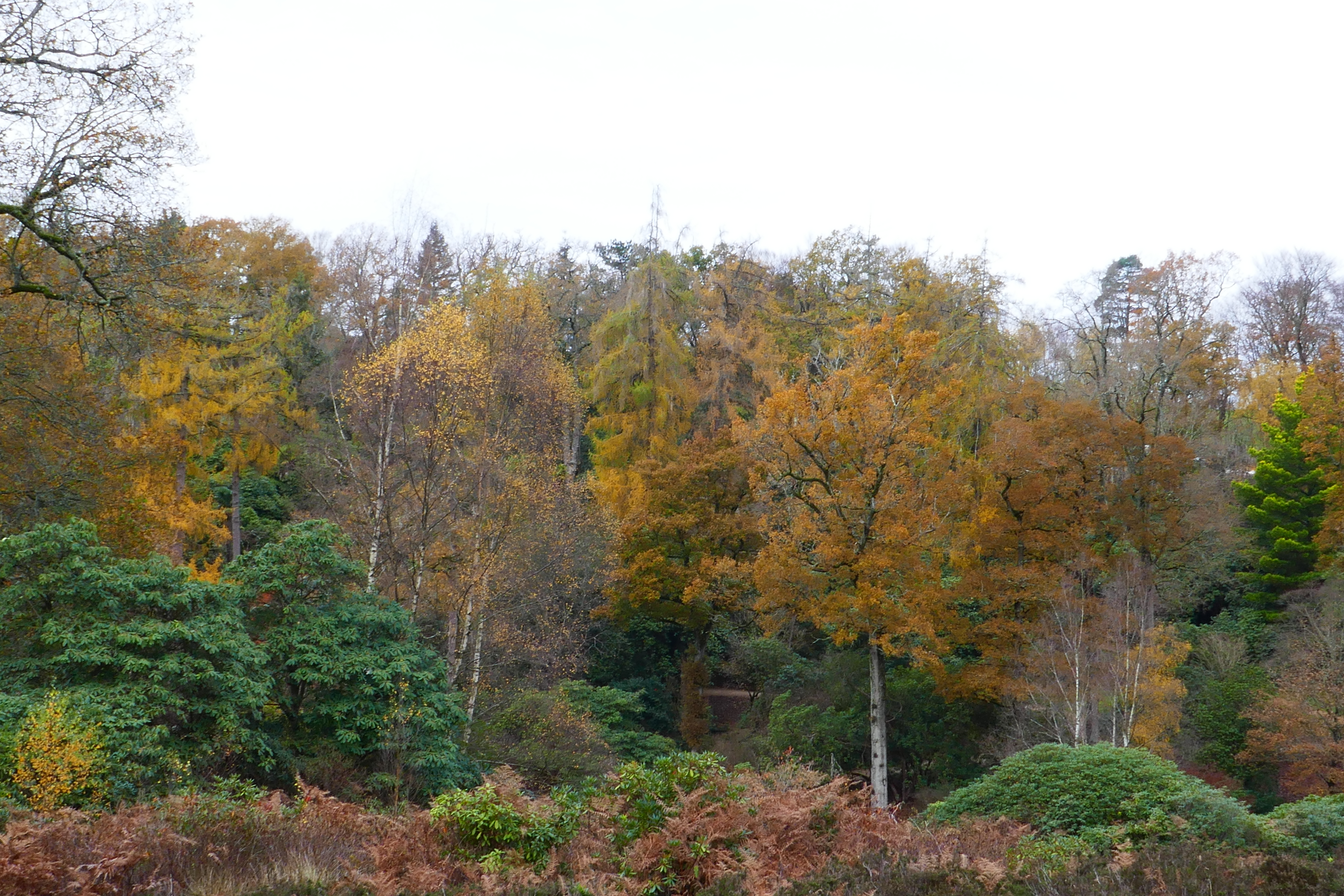 Sadly, though inevitably, neither the weather nor the autumn glory can last forever. Storms sweep in, temperatures drop further and frosts begin, after which it rains leaves. By the time I visited Leonardslee Lakes and Gardens some trees were completely bare while the foliage that remained was mostly mellow, and looked especially subdued under stubbornly cloudy skies. Only the yellow leaves of the deciduous larch, a few maples in sheltered parts of the rock garden and some beautiful dogwoods (Cornus kousa and Cornus ‘Norman Haddon’) hung on to some real radiance, though there were still many beautiful views.