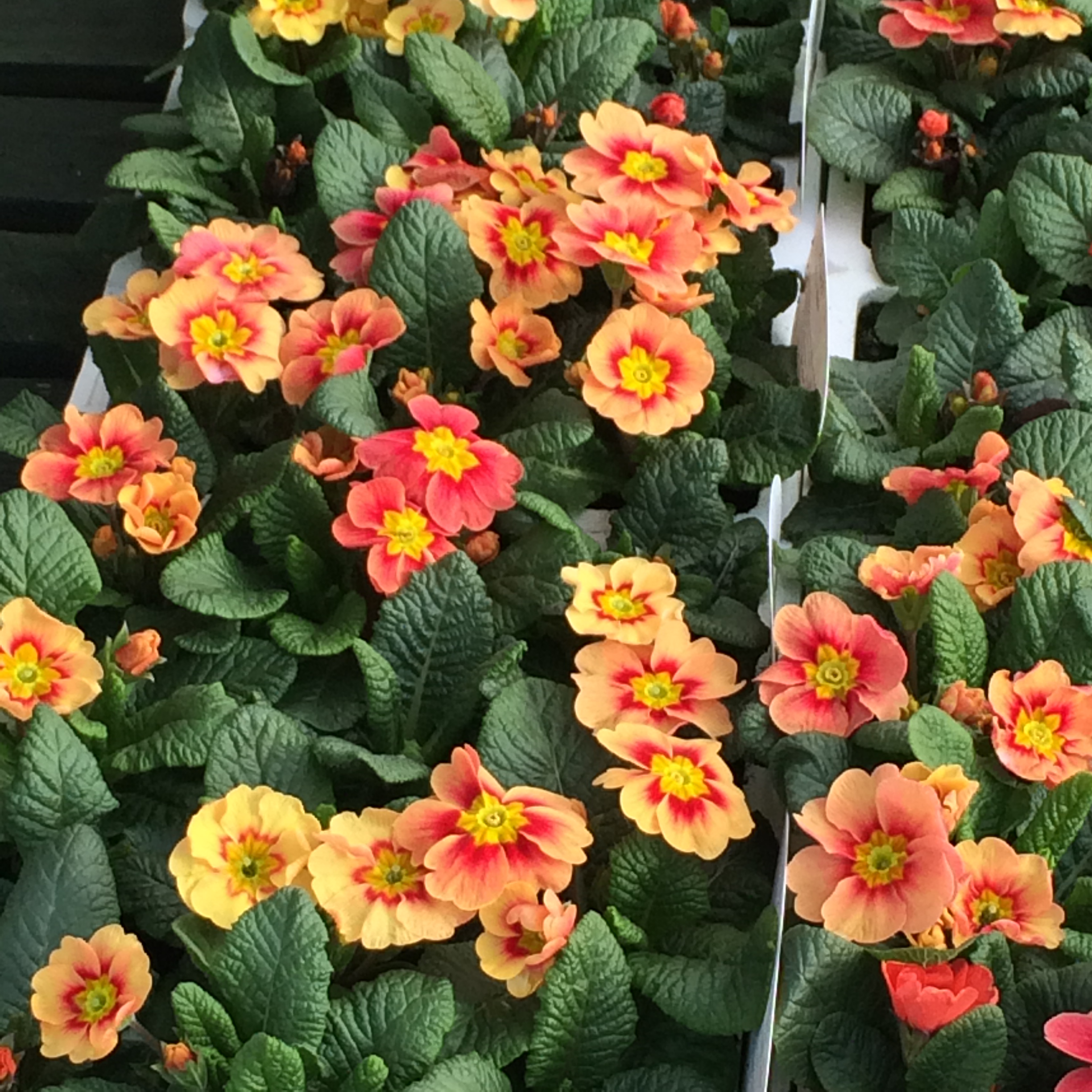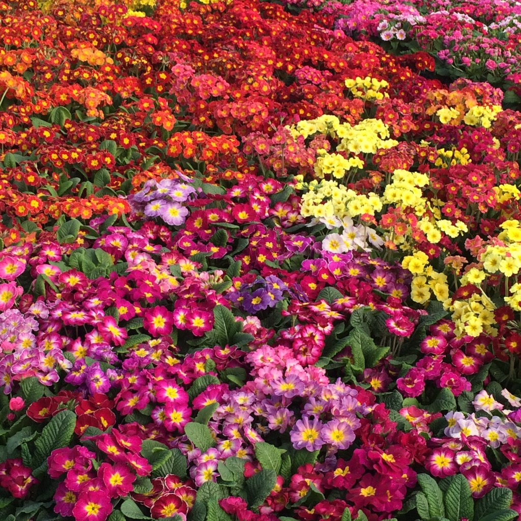 The amount of work that goes into breeding primroses and the number and diversity of the different series and individual varieties now available reflects how many are sold. The pictures below should give you some idea of the scale of the market, especially when I tell you that all the different varieties you can see there represents the range being offered by only one wholesale company, and that this photo only shows about half of the greenhouse that was filled with plants for their open days (held for the buyers of garden centre and online retailers to see the range and decide what to stock).