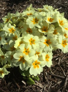 You don’t have to hunt for them in the wild because of course primroses and polyanthus are one of the most popular of the spring garden plants, too, although many years of breeding has led to some highly coloured, sometimes huge flowered varieties that seem to owe little apart from their basic flower shape to their simple origins. Colour ranges romp over the rainbow and some flower patterns seem to come from the zoo.