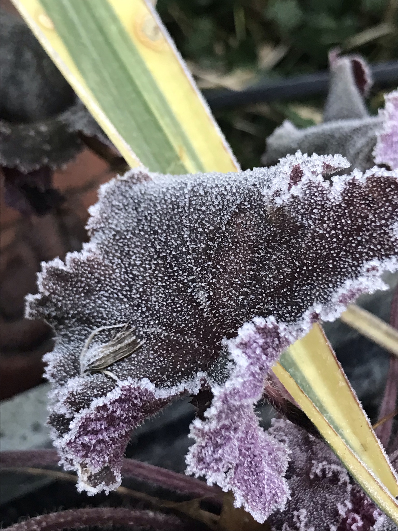 Heuchera ‘Rex Purple’, which I bought at the same time as ‘Berry Timeless’, has fabulous leaves. Their shape, lobed with curled edges, gives glimpses of the rich purple undersides and the purple top is garnished with a pewter sheen and dark green veins. The flowers sit on delicate purple stems. They are quite dainty but very pretty and the spikes are short so the flowers sit close to the top of the clump of leaves. I remember planting it into a large trough after something else in there had died and I had nothing else to hand. It wasn’t what I’d had in mind, but it ended up working really well because the combination of pewter and purple in the leaves went so well with the grey of the trough I used. It’s a big sturdy plant, too, and as you can see from the pictures I took recently (in January) this one is definitely evergreen.